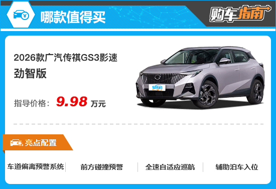 所以综合来看,2026款广汽传祺GS3影速的劲智版更值得推荐,购车时可优先考虑。
