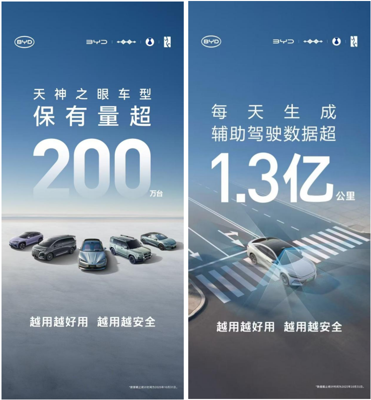 除了长期坚持巨额的研发投入以外,比亚迪还深知能普惠到普通用户的技术,才是好技术。因此我们可以看到把“天神之眼”辅助驾驶系统,下放至10万以内车型的比亚迪,截至10月底已拥有超200万“天神之眼”用户,日均生成的智能驾驶数据里程更是超过1.3亿公里,这不仅成为“天神之眼”辅助驾驶系统的成长养料,还依托“科技平权”形成了车企与用户相互得益的良性循环!