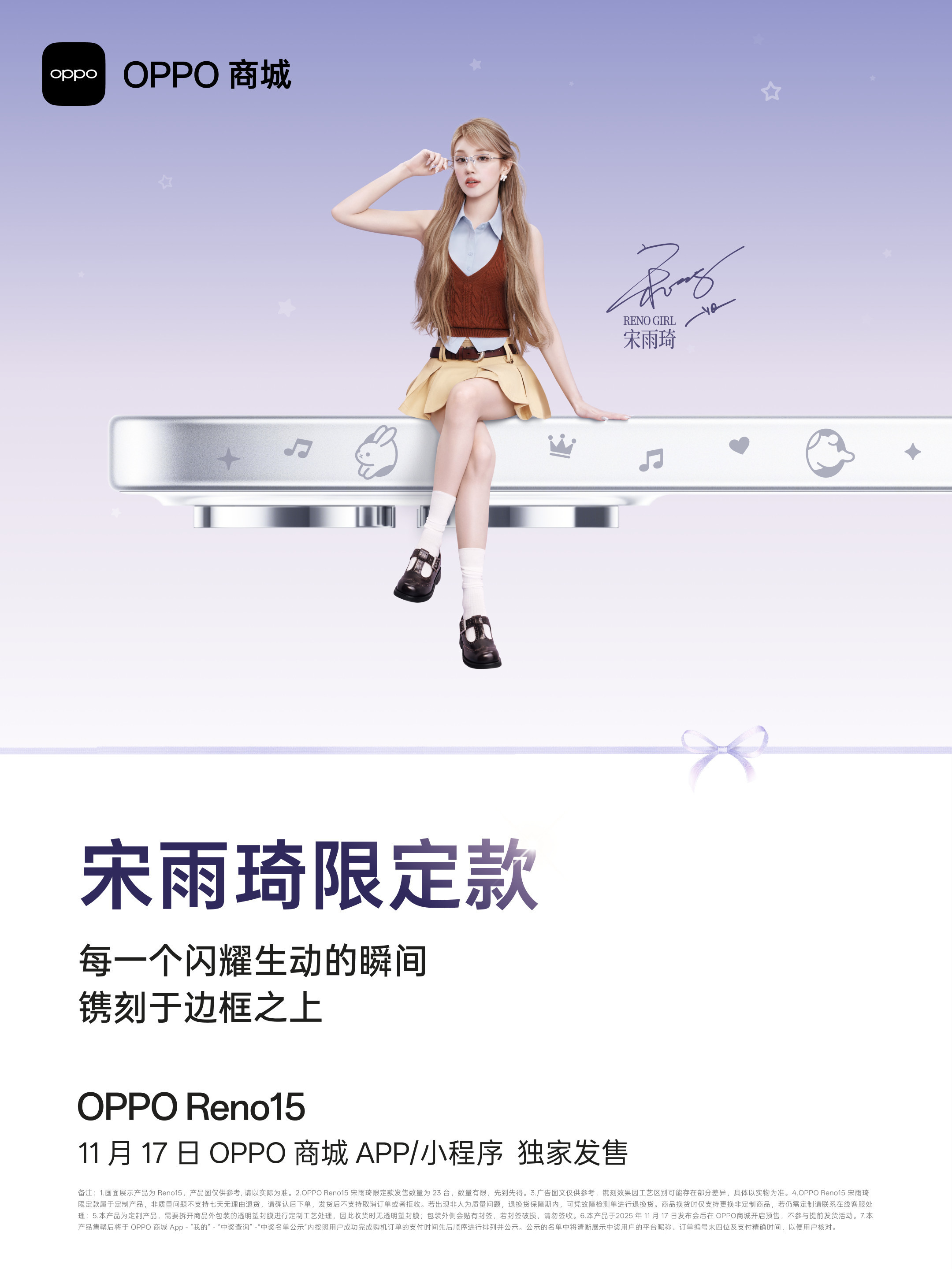 官方信息显示,OPPO Reno 15系列将于11月17日19:00正式发布。新机在外观设计方面独具匠心,特别推出了宋雨琦限定款,满足粉丝的个性化需求,同时还有星光蝴蝶结配色等多样外观供用户选择。其中,星光蝴蝶结配色采用了独特的紫色调,结合精妙的光影工艺,极具浪漫与时尚气息。后盖模组更是运用了与iPhone同款的冷雕玻璃工艺,让手机整体看起来更加高级。